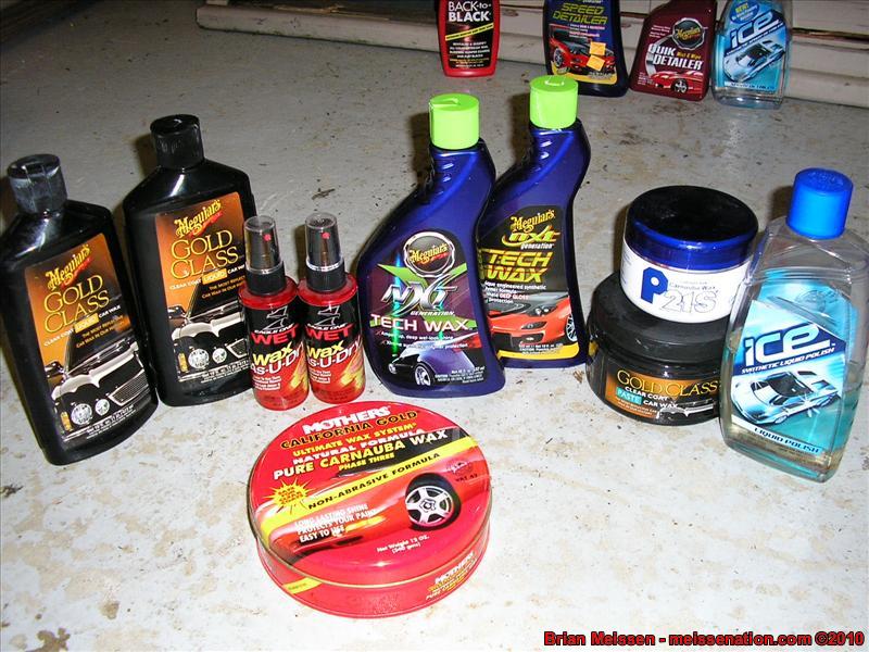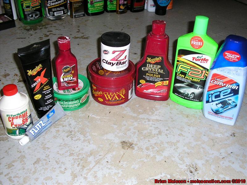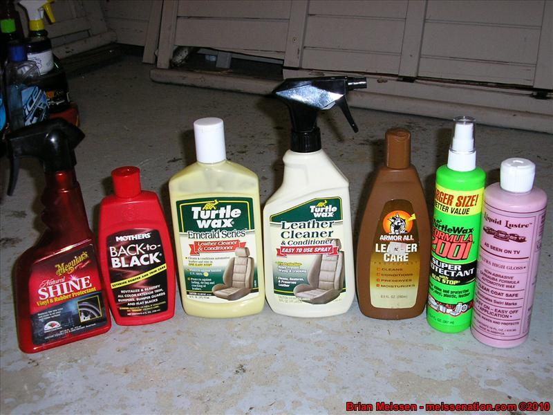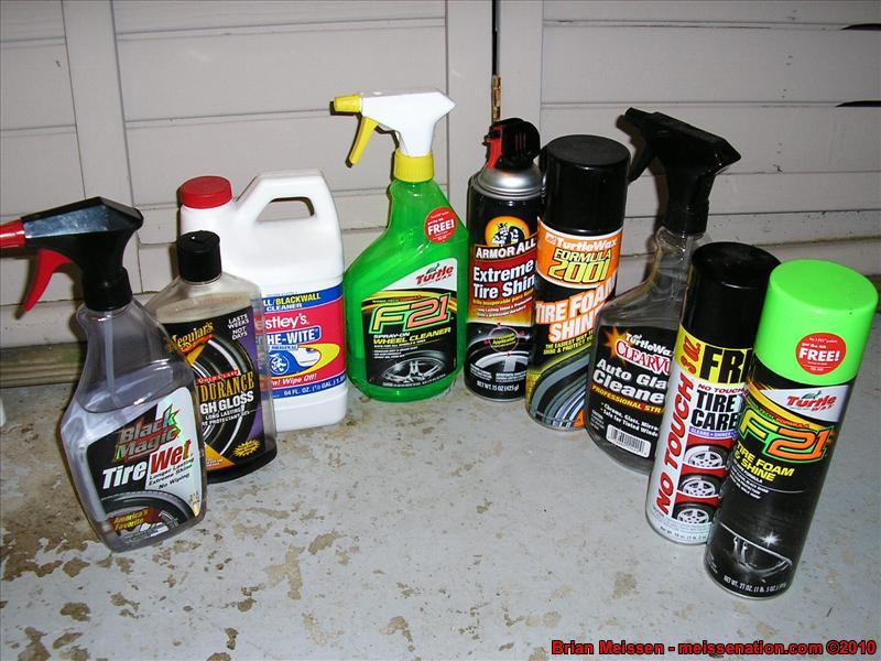 3 or 4 different Tire Shine products, Eagle One, Meguiars, Mothers, etc.