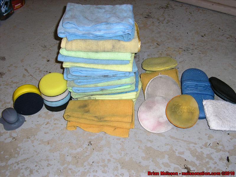 About 40 microfiber towels (I buy the 3 pack every time I buy detail stuff at Murrays or Autozone)
