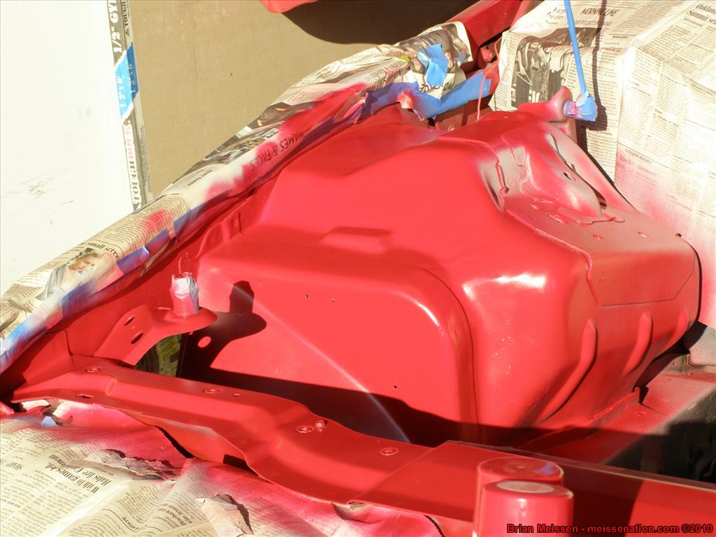 Don't get too envious, this IS rattle can after all and not a real paint job. Worst part is that the paint brush was like... disintegrating while I was painting the POR15 on the driver's side so I have bristles embedded into the paint that I have to sand/cut out.
