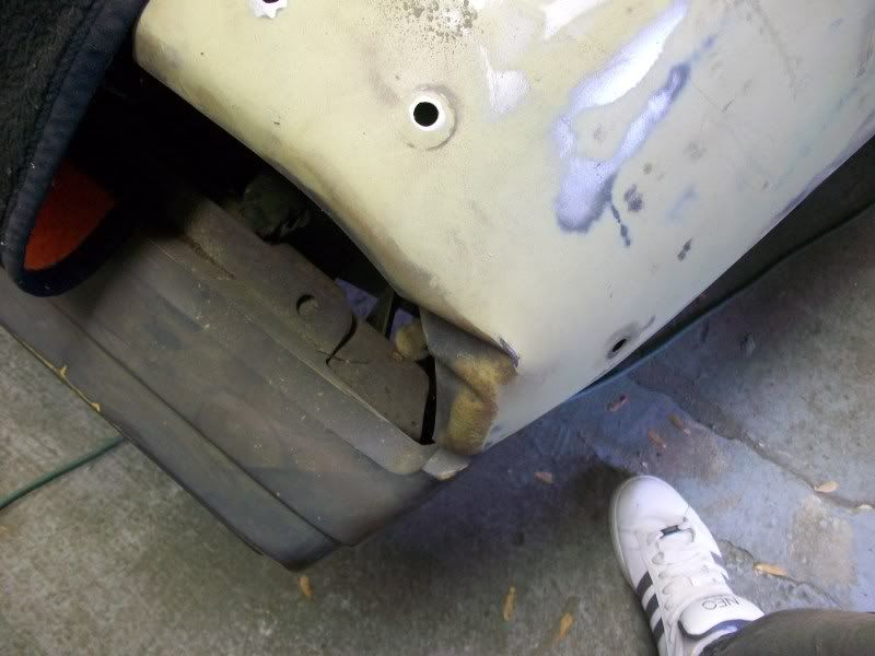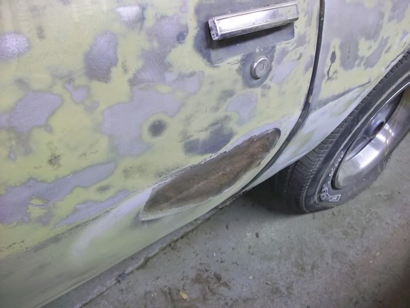 Got a spot that was hard to take pics of today, on the drivers side, in the outside corner of the drivers side back seat, that is a pretty good sized hole that will need taken care of and filled. Havnt looked yet, at too much of the floorboards or underneath the car yet.....but will get to that pretty soon......